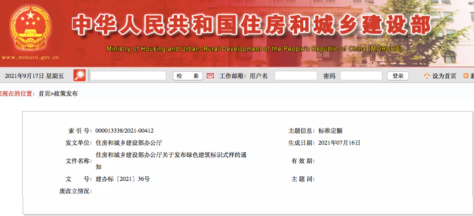 9月15日,住房和城鄉(xiāng)建設(shè)部發(fā)布了關(guān)于綠色建筑標(biāo)示式樣的通知。按照《綠色建筑標(biāo)識管理辦法》要求,住建部進(jìn)一步完善了綠色建筑標(biāo)識證書式樣,增加了標(biāo)牌式樣。